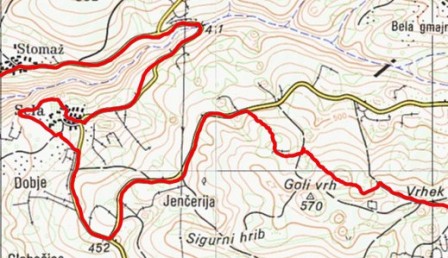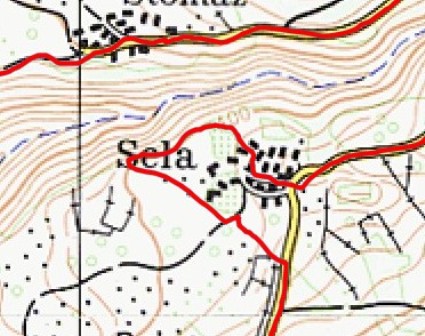 Tam nekje iz Dobja se vasi Sela in Stomaž vidita kot eno. Stala sva tam nad vasjo Sela in (spet) nisva vedela kje je zdaj tisti  kanjon rečice, ki teče med obema vasema, videlo se ga namreč ni, obe vasi pa zliti v eno. Pa sva si rekla - po karti sicer zgleda malo strmo, a dejva midva probat! Ne moreš verjet - res sva šla probat!