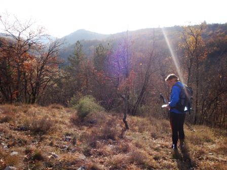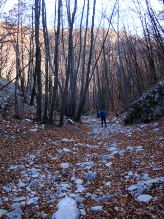 Spet torej kar počez, človeške poti sicer ni, je pa ogromno shojenih poti, a najbrž od kopitarjev. Srne, jeleni, še najbolj pa sumiva divje svinje, povsod je kaj zritega. Helena seveda v strmino leti ko petnajstletnica, jaz pa malce bolj sopiham...