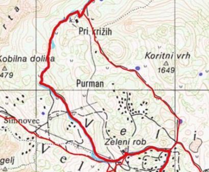 Ta, leva pot mi ni preveč všeč, greš preveč dol potem moraš pa do Križev kar nekaj gor. Tam okoli iščem še lovsko kočo, a je zgleda na pomolu, kar nekaj metrov nad menoj, tja pa se mi ne da. Naslednjič torej!