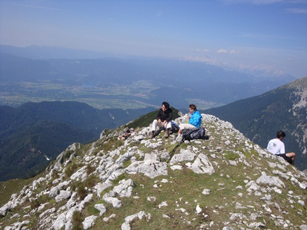Malce nad Roblekom smo se ustavili, si našli prost vrhec poleg poti, kjer smo lahko v miru spet uživali. Saj muziko pa smo imeli od spodaj...