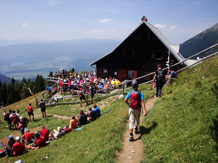 Ta dan je na Begunjščici ogromno ljudi, pri Robleku je namreč planinsko-glasbena prireditev Na Roblek bom odšel. Do Prevala imamo sicer mir, na Prevalu jih je tisoče, do vrha pa je spet relativen mir.