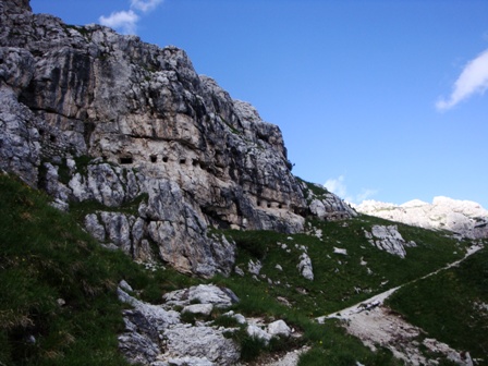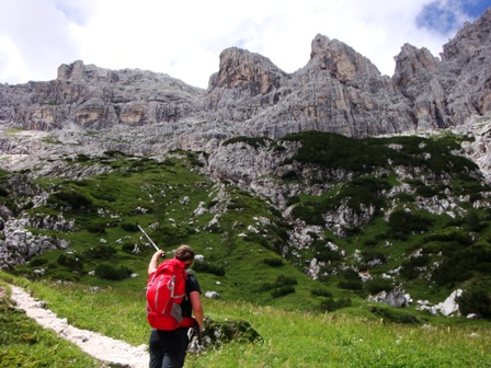 Pod strelnimi linami jo mahneva proti Passo degli Scalini