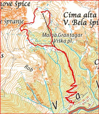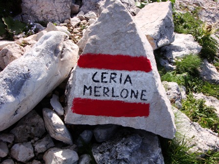 In sva se zapodila proti vrhu Špika Hude Police. A to ni bil najin osnovni cilj. Osnovni cilj je bila tokrat pot Ceria Merlone! Že prejšnji dan sva razmišljala o tem, morda bi šla od koče Corsi, a me je že takrat stiskalo in sem raje izbral prvi del, kjer se lahko morda malce bolje in hitreje umaknem, če bi šlo kaj narobe. Še posebno me je matral - še preden sem sploh kam prišel - tisti del počeznega prečenja po policah. Sem že vedel...