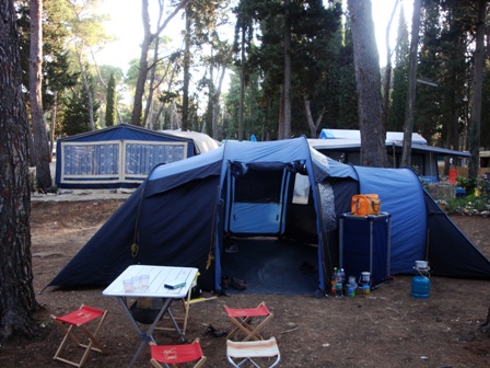 Naslednji dan pa sta prišla še dva in postava je bila popolna. In še dodaten šotor. Tako, da smo zavzemali že kar lep del prostora...