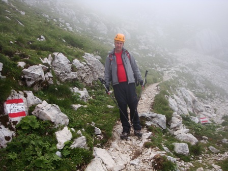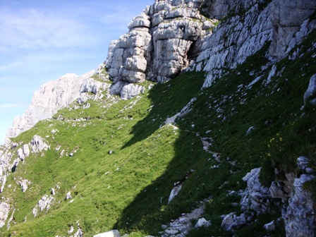Pot je zanimiva, povprek gre čez vsa travnata pobočja, a mene spet ni nič strah. Pa si ne morem ravno razložit, zakaj. Zato, ker je dobro nadelana? Ker trave niti niso tako strme? Ker...? Kdo ve.