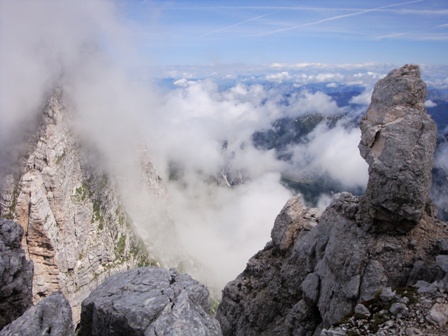 Nekje vmes se nam pod nogami utrga še precej velika skala, k sreči gre za las mimo pohodnice, ki se trudi navzgor. V sekundi, dveh je imela skala polno hitrost in še daleč dol smo ji sledili, dokler se končno ni ustavila! Kako gre to hitro in čisto nič ne moreš! Večina kamnov se ti ustavi takoj ali po par metrih, takole pa smo videli, kako lahko gre, če so pravi pogoji! Takoj dobi brzino in zelo težko se ji izogneš, ker preprosto ne moreš biti dovolj hiter... Ko šus je šlo, ej. Precej strašljivo.