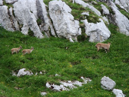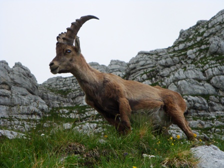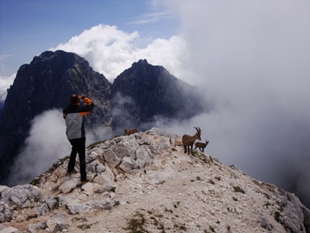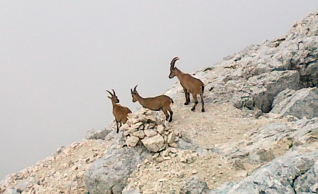 Tile umetno naseljeni kozorogi okrog Montaža ne poznajo niti strahu pred človekom. Neke tri metre razdalje je za njih povsem dovolj, zdi se, da dobro vedo, česa je zmožen človek.