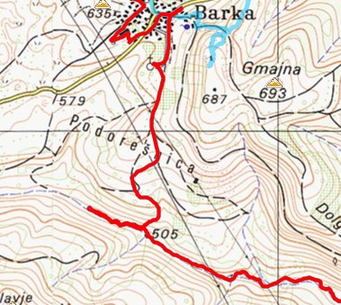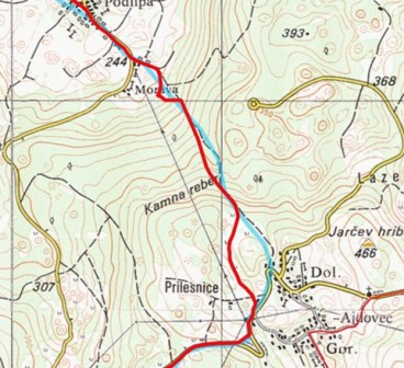 Brez večjih težav mi celo uspe priti do Podlipe. Tam sva si z Rajkom rekla, da se srečava, ker naju pač oba pot vodi tule mimo. Ampak kje se bova midva srečala, daj no, po celem dnevu hoje/kolesarjenja? Ni šans. Zato zavijem - kljub nasvetu lokalne mame, da naj grem raje po cesti naokrog - direktno v hrib.