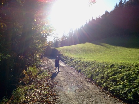 Zgrešila sva se torej le za par minut, povsem neverjetno! Malo sva potem tulila s hriba na hrib, splašila celo vas, nato pa se je on zapodil po cesti naprej, jaz pa direktno spet v hrib. Ojej.
