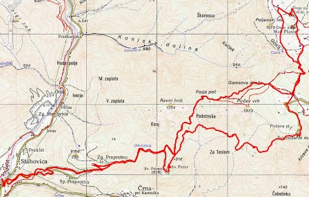 Pojdimo še pogledal čez Pasjo peč, sem slišal, da so popravili pot. Me prav zanima, kako zdaj zgleda. Pa še otrokoma bo zanimiva, čeprav bi sam raje videl, da gremo po ta zgornji. Tema je sicer blizu, a ni še tako hudo, nekje pri Primožu nas bo najbrž ujela.