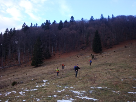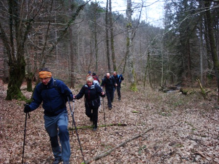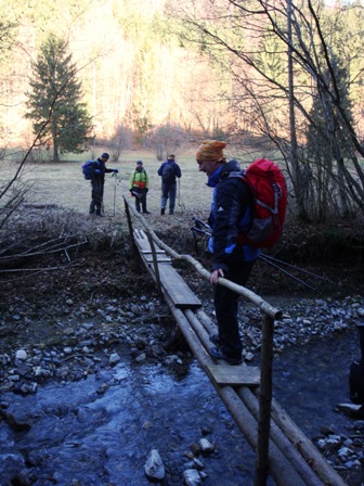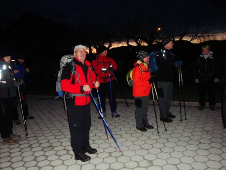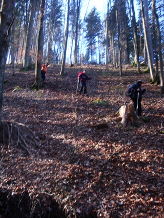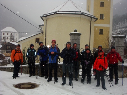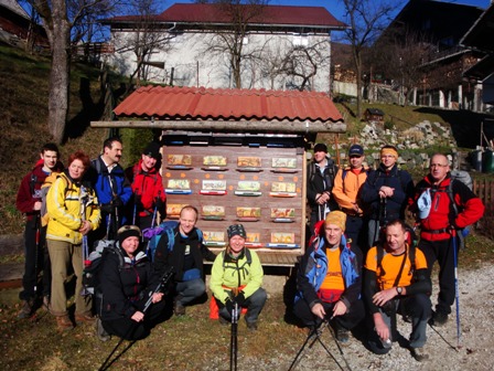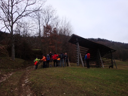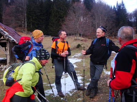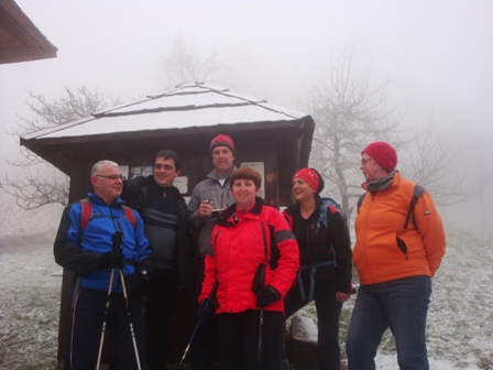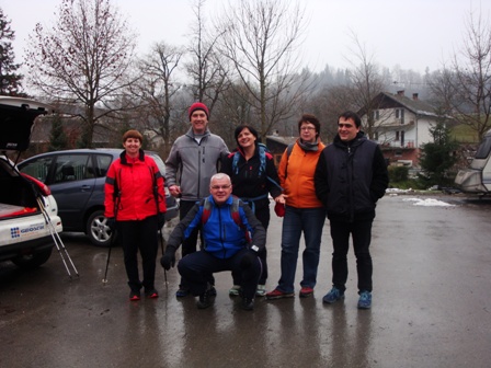 Štirinajst pohodnikov se nas je nabralo, kar je pravzaprav kar veliko! Vreme kar ok, čeprav bi meni bolj odgovarjal mraz, da bi bilo vse bolj zamrznjeno. Čez polja, potoke in kar povprek je mnogo lažje hoditi ko je vse zamrznjeno. Blato je hudir...