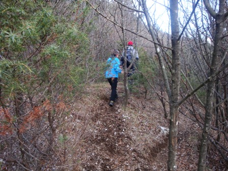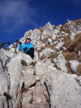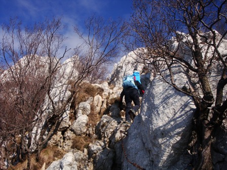tukaj sem si nataknil derezice, ker je bilo kar fino zloščeno po tleh - ostane pa le še manjši spust do koče: