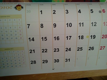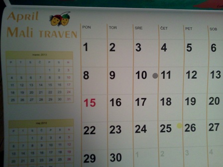 A počasi se mi dozdeva, da so tile koledarji vsako leto malce slabši, malce bolj nemarni. Še posebej sem bil žalosten, ko nam ga je Tamauček iz šole prinesel. O, njihove slike so že ok, vse lepo in prav, a na žalost nihče koledarja prej ni pregledal.