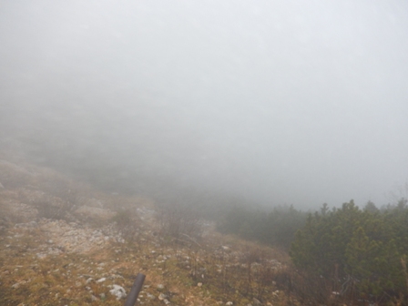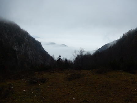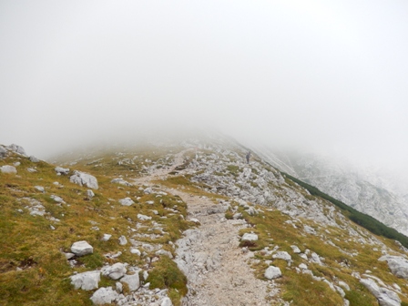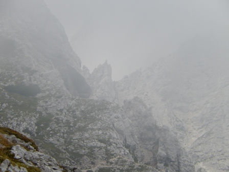 Ampak potem je pa večinoma nehalo kapljat. Ni bilo ravno jasno, so se pa hribi le videli, Škrlatica...