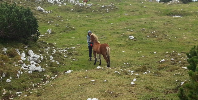 Vreme sicer ni najlepše, vmes celo malo zapiha, a le za par minut, meglice se podijo, še kar toplo je. Še konje srečava, pomešane med krave, mali prijazni žrebiček pa je prav domač in bi se kar božal in božal. To se pa res ne zgodi dostikrat...