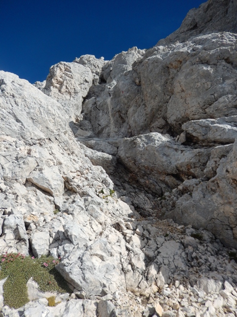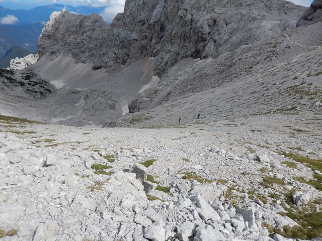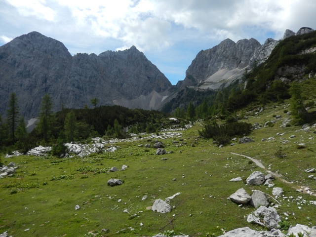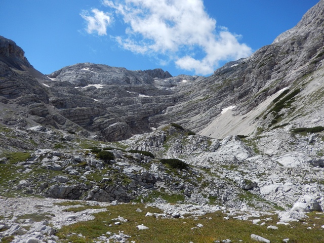 Pa naju najprej zmotijo ljudje, ki iščejo in tudi najdejo neoznačeno pot v dolino Za Cmirom in naprej dol v Vrata - tole bo treba enkrat probat! -, potka je čisto dobro shojena in vidna.