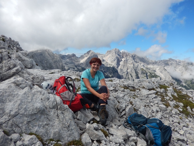 Za Begunjskim vrhom se usedeva in spet uživava. Načrtujeva naslednji korak. Greva do Cmira?