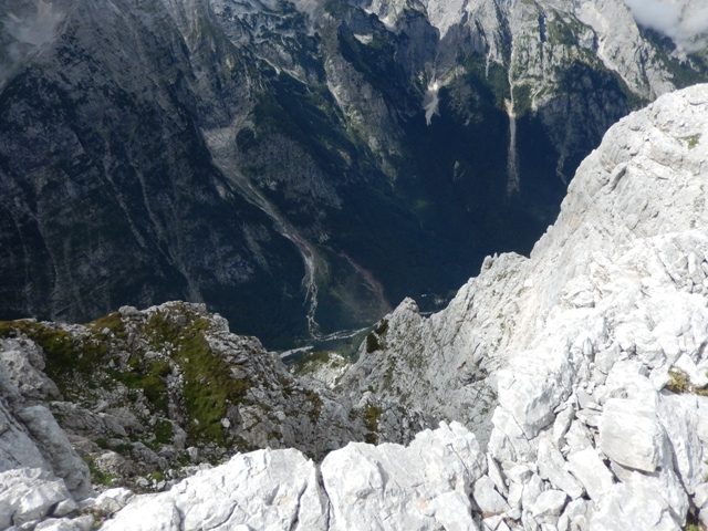 Skratka... pravijo, da moraš gledat dol v globino, da te je manj strah. No, to sem počel že velikokrat in to še vedno počnem. In tudi zdaj sem, direkt dol v Vrata, precej daleč, nekih 1300 višinskih metrov, pljuval bi lahko na Tominškovo pot. Ampak po pravici povedano - prav nič bolje mi ni pri srcu. Prav nič.