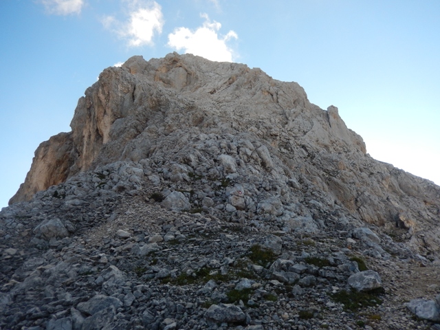 Kar po grebenski poti, še za to nisem dobro verjel, ali bom sploh prišel gor. Po plezalni ni bilo za mislit, še tukajle ne vem prav dobro, kaj mi je bilo, da sem se strinjal s tole strmino...