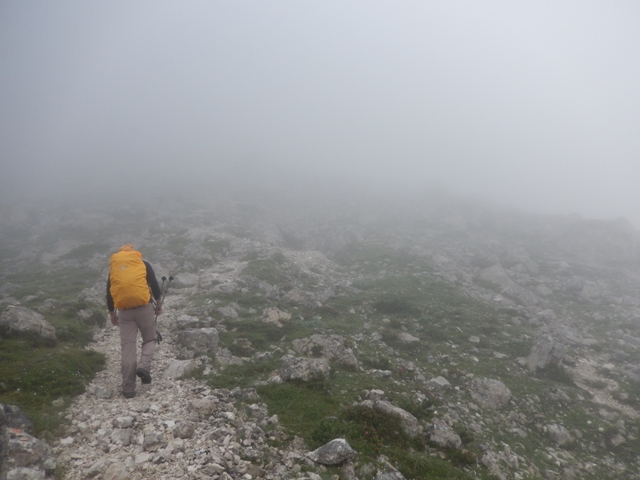 Hodila sva lepo po poti, nič se ni videlo, pojma nisva imela kje sva, kam greva, kako visoko sva, koliko je še... kar hodila sva, se sem in tja ustavila, kaj popila, pojedla, a kakšnega navdušenja ni bilo.