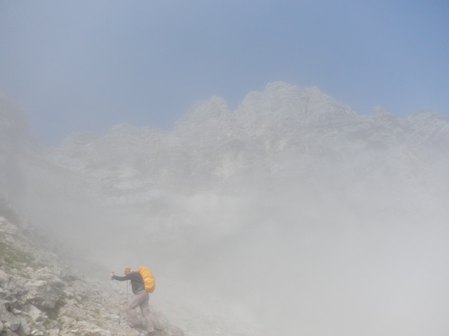 Ugotavljam, da mi samo zato, ker smo v Julijcih, ki jih nisem prav dobro navajen, strah poskoči približno še za enkrat. In če je že v KSA težko, je tukajle... huh, še mnogo težje?