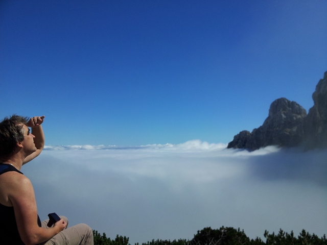 Čaka naju prekrasen sončni vzhod, kjer se nad dolinsko meglo vidi daleč v alpe, kažeš mi celo Grossglockner v Visokih Turah. Vse je na dlani in hribi se ta dan najbrž dokončno naselijo v mojih spominih, v mojem srcu.