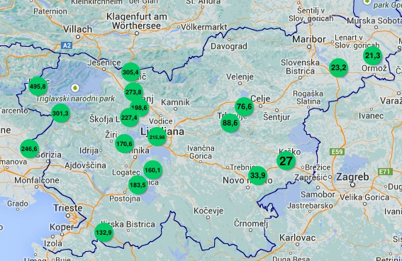Glede na amaterske vremenske postaje, je v navedenem obdobju padlo ogromno padavin. Posočje seveda vodi, a tam so navajeni velikih količin, medtem ko osrednja Slo ni vajena takih številk. Na vzhodu padavin bore malo.