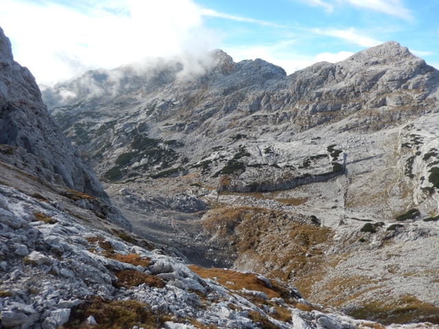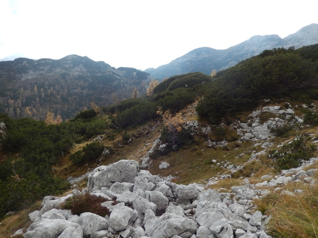 Obiramo se. Malicamo. Čakamo. Občudujemo. A vseeno pojdimo še naprej. Prehodavci se že lepo vidijo, a do tja ni prav blizu, pot gre kar precej naokrog. Tam v kotu bomo z 2200m celo bližje Mlinarcam kot pa Prehodavcem.