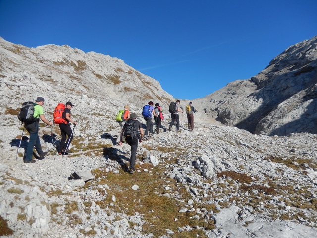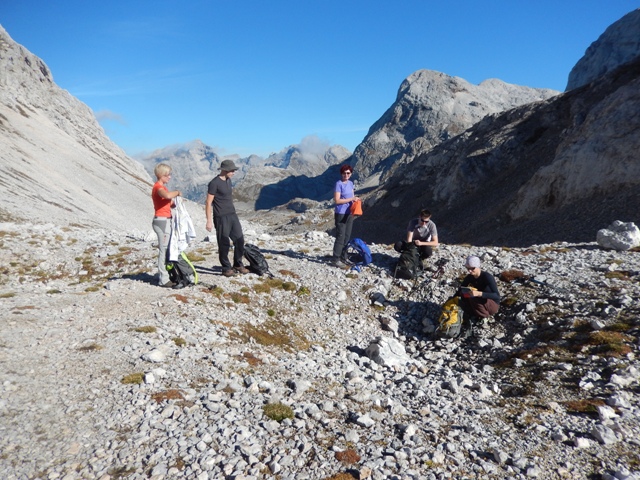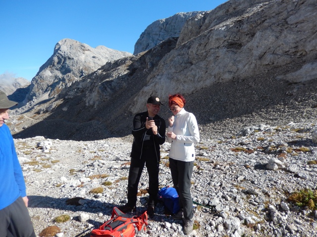 Na žalost ne moremo po dolini Jezer nazaj, splet okoliščin nam nalaga, da gremo po isti poti nazaj, deliti se pa tudi nočemo, prav super se imamo. Pa tudi čas nekako hitro mineva, ob takem lepem vremenu gre hoja bolj počasi, čas pa hitreje teče.