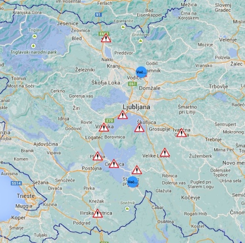 Intervencije 8.11. so ponovno razpotegnjene večinoma čez osrednjo Slovenijo.