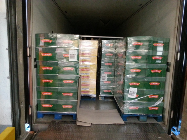 Zanimivo je tudi, da mora voznik sam povedati nakladalcem kako in kam naj mu naložijo palete. Pa je seveda odvisno od teže in količine in vsega boga... Na koncu koncev gre notri tokrat 20 ton in najbrž res ni povsem vseeno, kako so naložene. Grem stavit, da ni malo mojstrov, ki so na prvem ovinku zvrnili cel tovornjak zaradi napačno naložene robe!