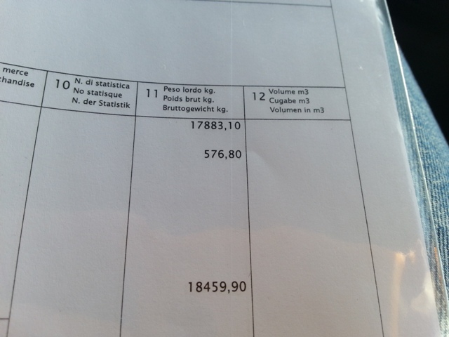 A formalnosti so opravljene presneto hitro, najin *prazni* tovornjak pa tehta natanko: