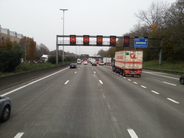 Zapodila sva se proti Antwerpnu, okoli po obvoznici, da ne bi po pomoti padla na plačljiv tunel. Madonca, koliko tovornjakov je bilo pa tu, na tej obvoznici! Vsi z enako potjo, proti pristanišču!