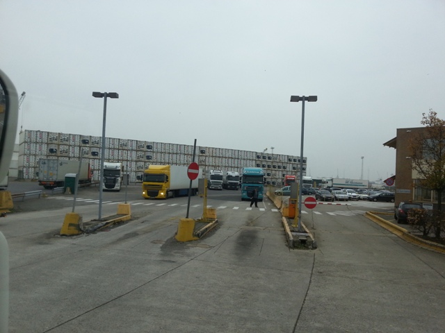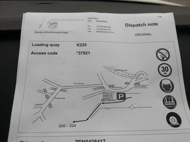 Ob 7h sva že prijavljena in dajo nama napravico, ki pove kam bova morala it razkladat. Pri vsem tistem številu ramp še dobro, bi se drugače človek kar zgubil.