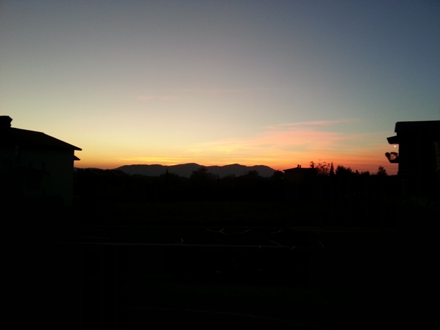 Proti večeru pa končno enkrat zapeljeva dol z avtoceste, do cilja imava še nekih kdovekoliko km regionalne ceste. Uau, celo pokrajino malo vidiš, celo približno veš, kje si, ne pa vedno za plankami avtocest!