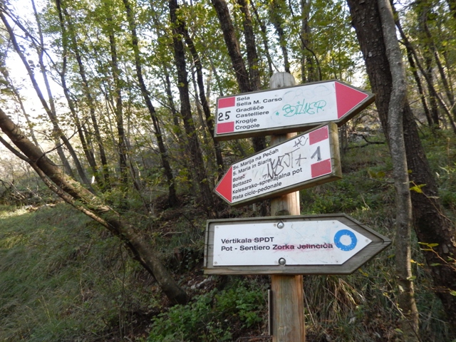 Malce smo se raztepli čez vas, prebudili iz sanjarjenja par psov, nato pa že zakorakali na planinsko pot št. 1. Pa ne v celi Italiji, le v FVG.