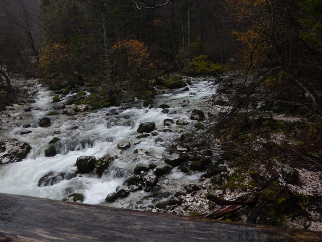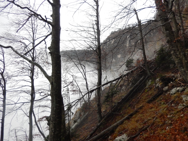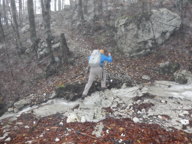 Pot, ki pelje po robu bohinjskega kotla je prekrasna. Že takrat poleti je bila prekrasna, tokrat pa je le še bolj! Popolna samota in divjina v tem deževnem vremenu!