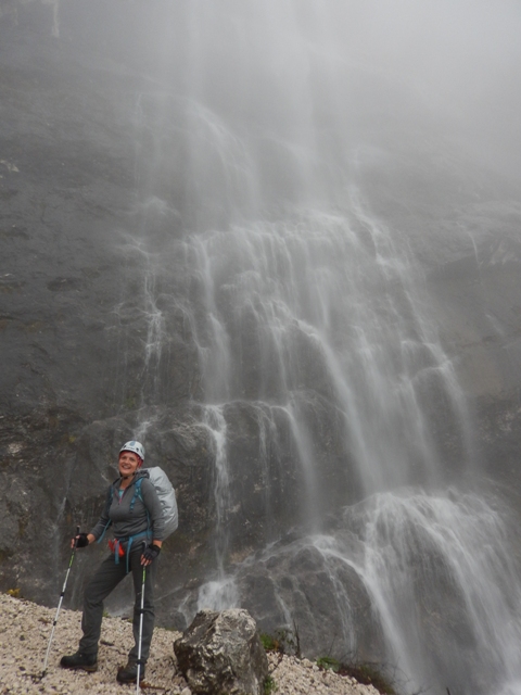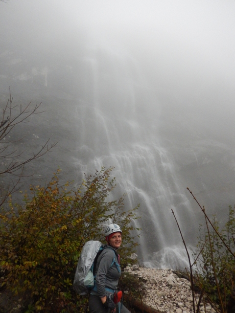 Razgled na slapišče naju še dolgo ne zapusti, le slikanje je v takem vremenu na daleč bolj oteženo. Škoda, a se res velikokrat ustavljava, kar ne moreva se poslovit.