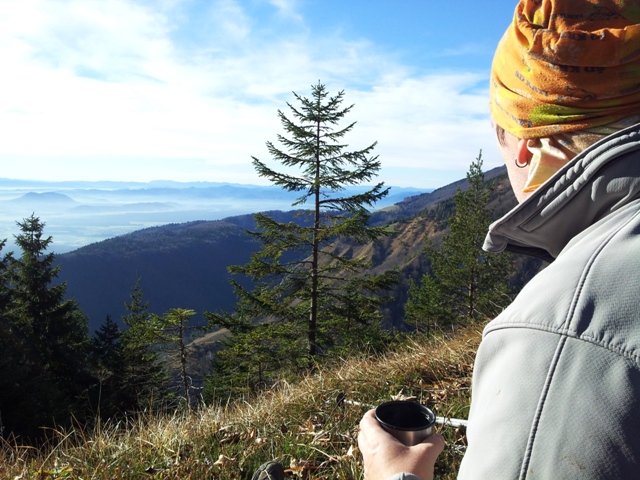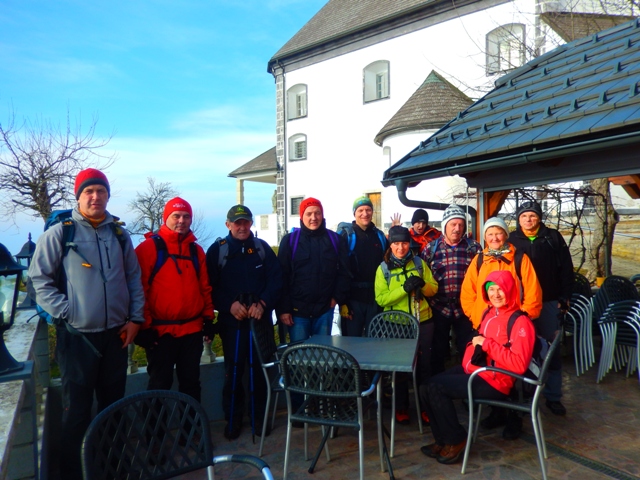 Prvi čaj in prvi večji postanek si privoščimo na Limbarski. Nekaj vetra, a vseeno je nekaj sončka! Vsaj za občutek.
