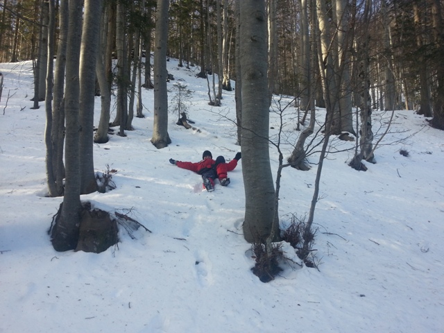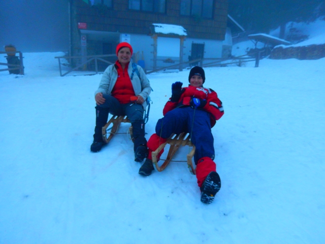 Malce pred novim letom pa je le zapadel sneg in v praznikih po novem letu nismo dobro vedeli, kam in kako. Še neke obveznosti smo imeli in tako smo se 3.1. le odločili za sankanje! Pejmo se sankat na Valvazorja!
