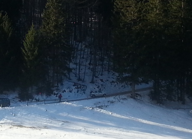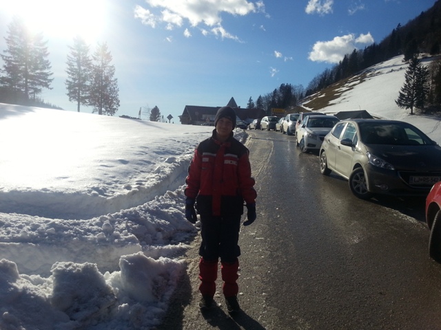 Smo imeli pa srečo, naslednji dan je bilo krepko pod ničlo in ves tisti žmoht je dodobra pomrznil in nekdo se je ravno naslednji dan poškodoval pri spustu z Valvazorja! Če si predstavljam, da je tista cesta pomrznjena... ufff, to pa bi res letelo. V jarek najbrž.