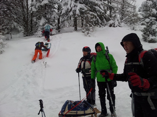 med to mojo zgodbo se je odvijala še druga, podobna zgodba, le da na drugi strani Planine. Naši so namreč že dobro prišli z gondolo do zgornje postaje, nato pa je sneg tudi njih dodobra zdelal. S sankami in kdovekoliko kilami robe so se do Mokrice prebijali namreč kar dobri dve uri in pol! Kar ti vzame v normalnem vremenu dobre pol ure... ok, ajde, slabo uro.