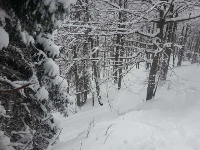Počasi me je začelo stiskat. Gaženja je bilo vedno več, o razmerah višje pa nisem imel pojma. Bo res pol metra? Ga bo še več ali manj? Kaj pa veter? Kako bo kaj z zameti? Koliko ga je nasnežilo, madonca?!