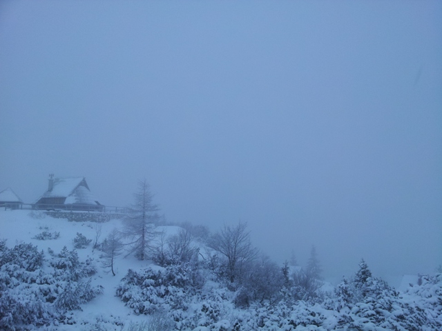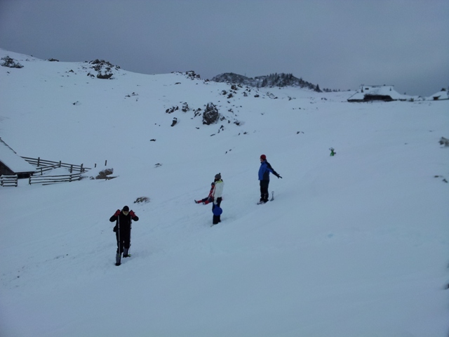 Kako smo vsi gor težko prišli, sem že zadnjič napisal. A ko si enkrat gor, ni več težav. Veselje ob snegu je vedno veliko, sploh otroško, kljub takšnemu vremenu: