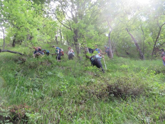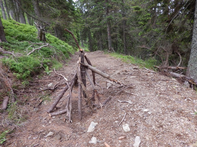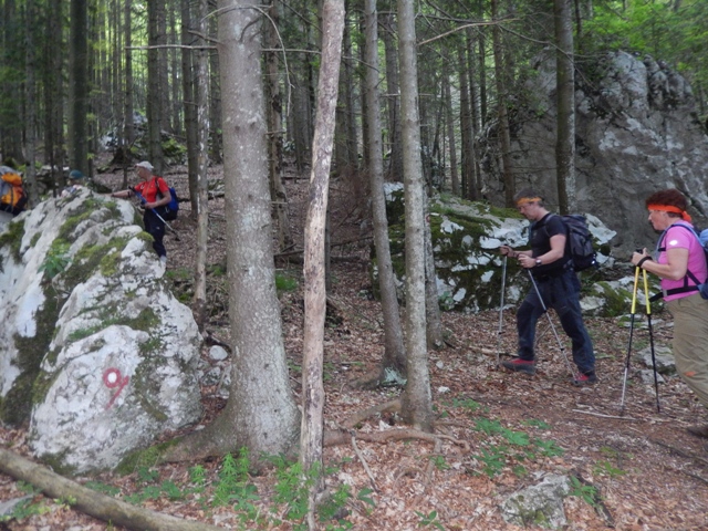 Ta mladi jo mahnejo dol proti Rogovilcu, najbrž se jim niti sanja ne, da je pot uradno zaprta, to najbrž vem samo jaz, ki se pred pohodi pozanimam. Se pa nihče drug ne sekira, pot je zaprta bolj zaradi teorije, napetosti v lokalnem PD, ne pa zaradi realne nevarnosti. Tako pač slišiva...