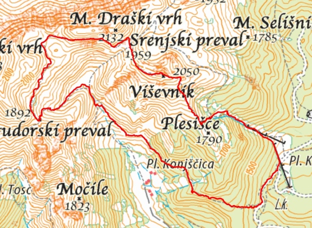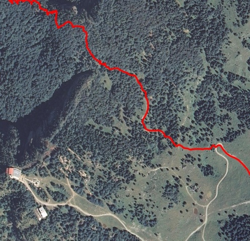 Za sestop sva imela par variant, ena od variant, ki je na moji karti PZS(!) lepo označena in markirana, je prek Laneža. Na karti ne zgleda prav nič huda, niti ni črtkana, niti pikčasta, normalna pot, torej. Japajade.