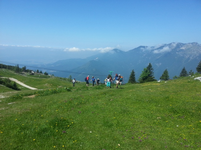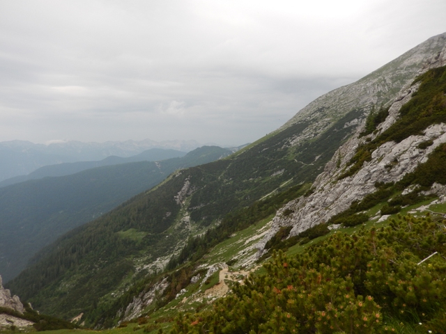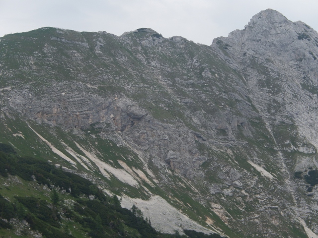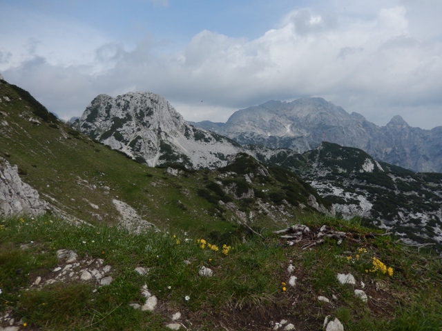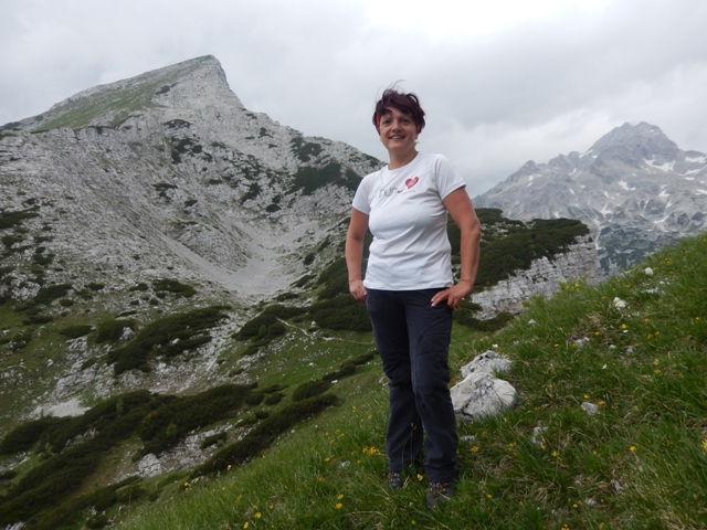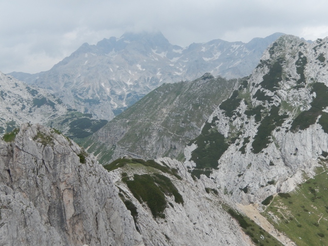 Potem spet hodiva in hodiva, vročina kar super, razgledi prekrasni, a vse se res dogaja počasi, nekje v ozadju. Tako mi šele čez čas kapne, da gledava Ojstrico.