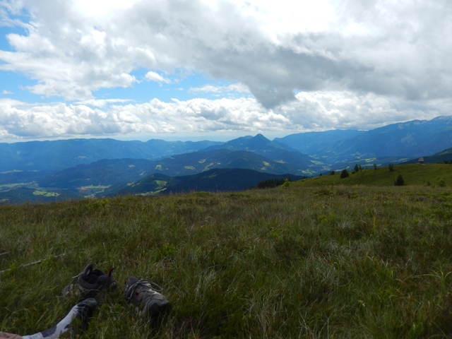 Ah, kaj vem, tale Raduha mi ni šla, tisto dobro urico in pol sem bil več ali manj siten. Pa je potem vrh vsaj malce omilil vse skupaj! S pogledom na domače gore.