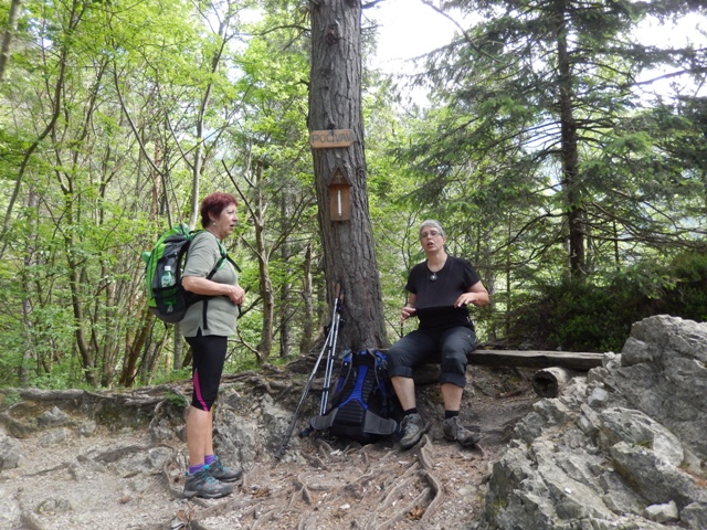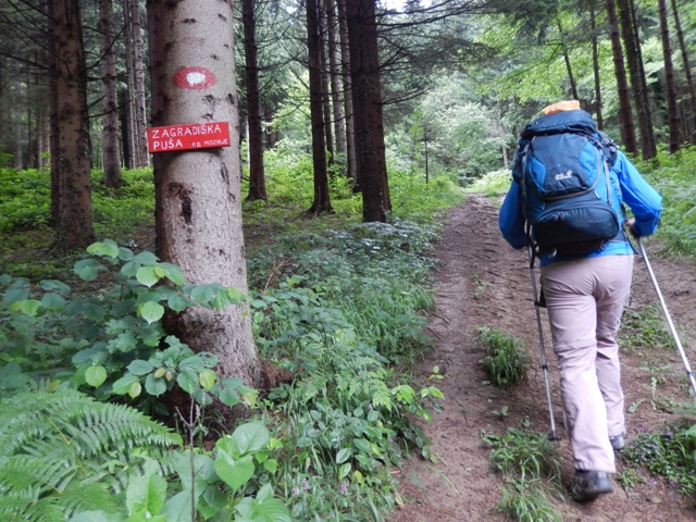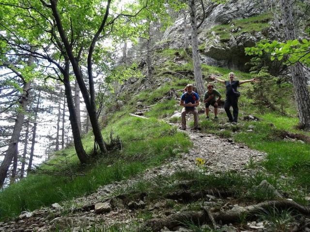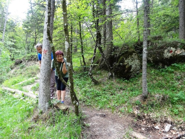 Res, malce sva kar obstala. Se nato hitro zjezila, ker je bila pot v tem predelu precej slabo označena in sva jo komaj zadela na nasprotni strani ceste, a si malce višje vzela spet kar nekaj časa, da sva se malo spočila in napolnila najine čute z lepoto.