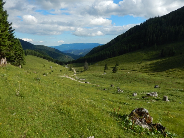 Potem pa planina Vodol. O, to pa je povsem nekaj drugega! Po karti si tegale sploh nisem takole predstavljal! Prekrasno! S pogledom na Menino, a?